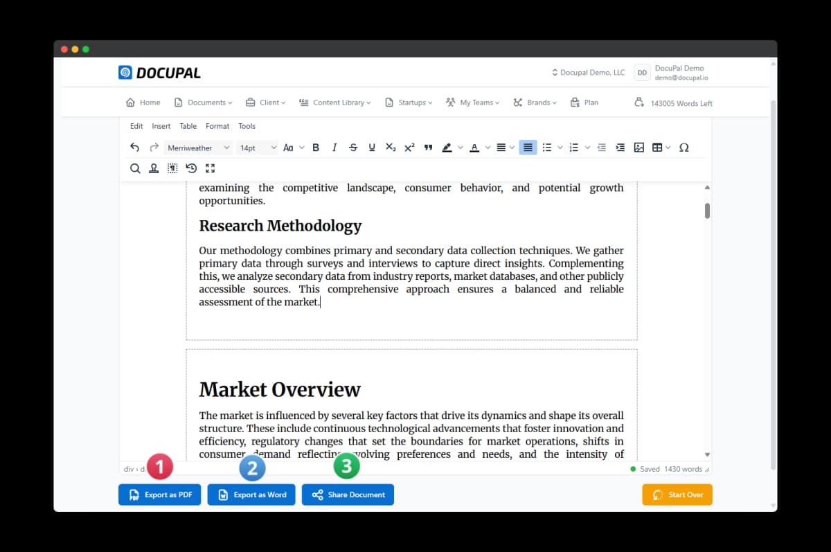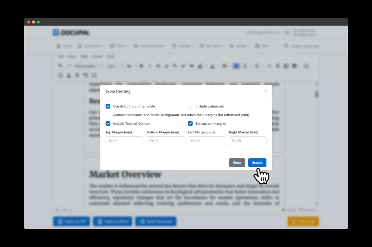 Docupal offers seamless export options to help you deliver professional-grade documents efficiently. You can export your document in two primary formats: